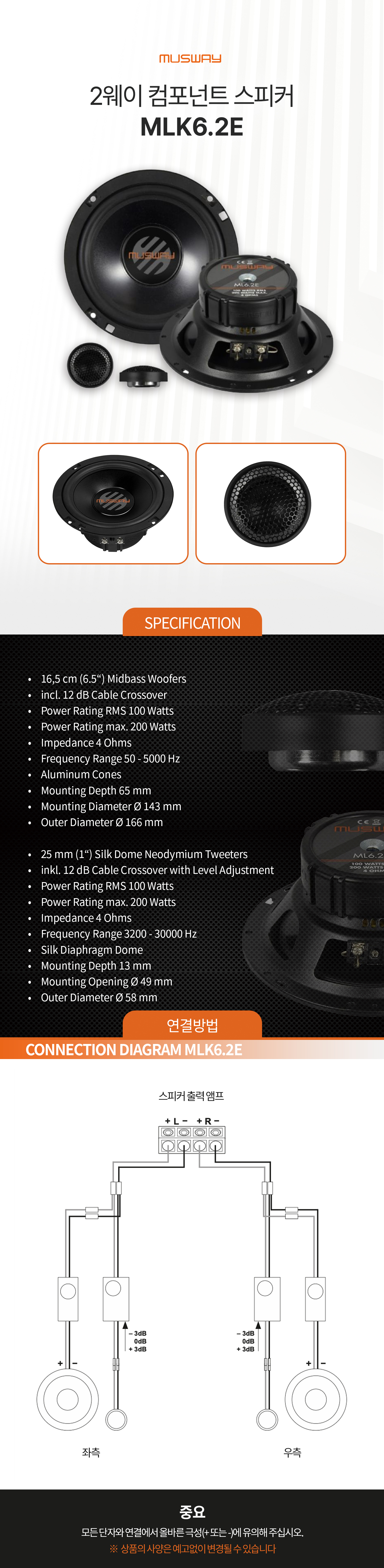 무스웨이 6.5인치 컴퍼넌트 스피커, MLK6.2E